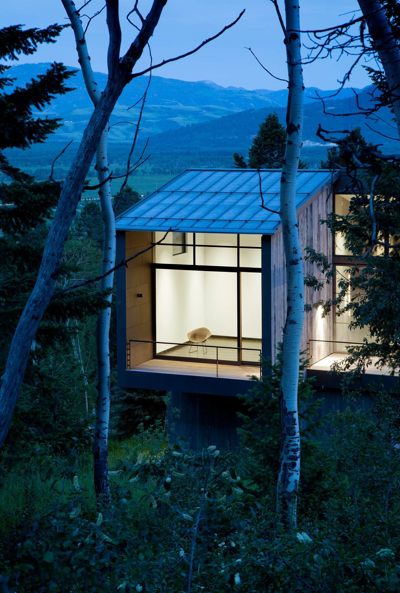 The steep, forested site of the Boulder Retreat is dominated by a granite monolith that became the project’s namesake, focal point, and organizing force. The interrelation between the boulder and home on the forested slope creates an intimate Zen garden-like experience. The site also opens up to filtered views of a valley through an aspen grove and to mountain ranges that shape the horizon.