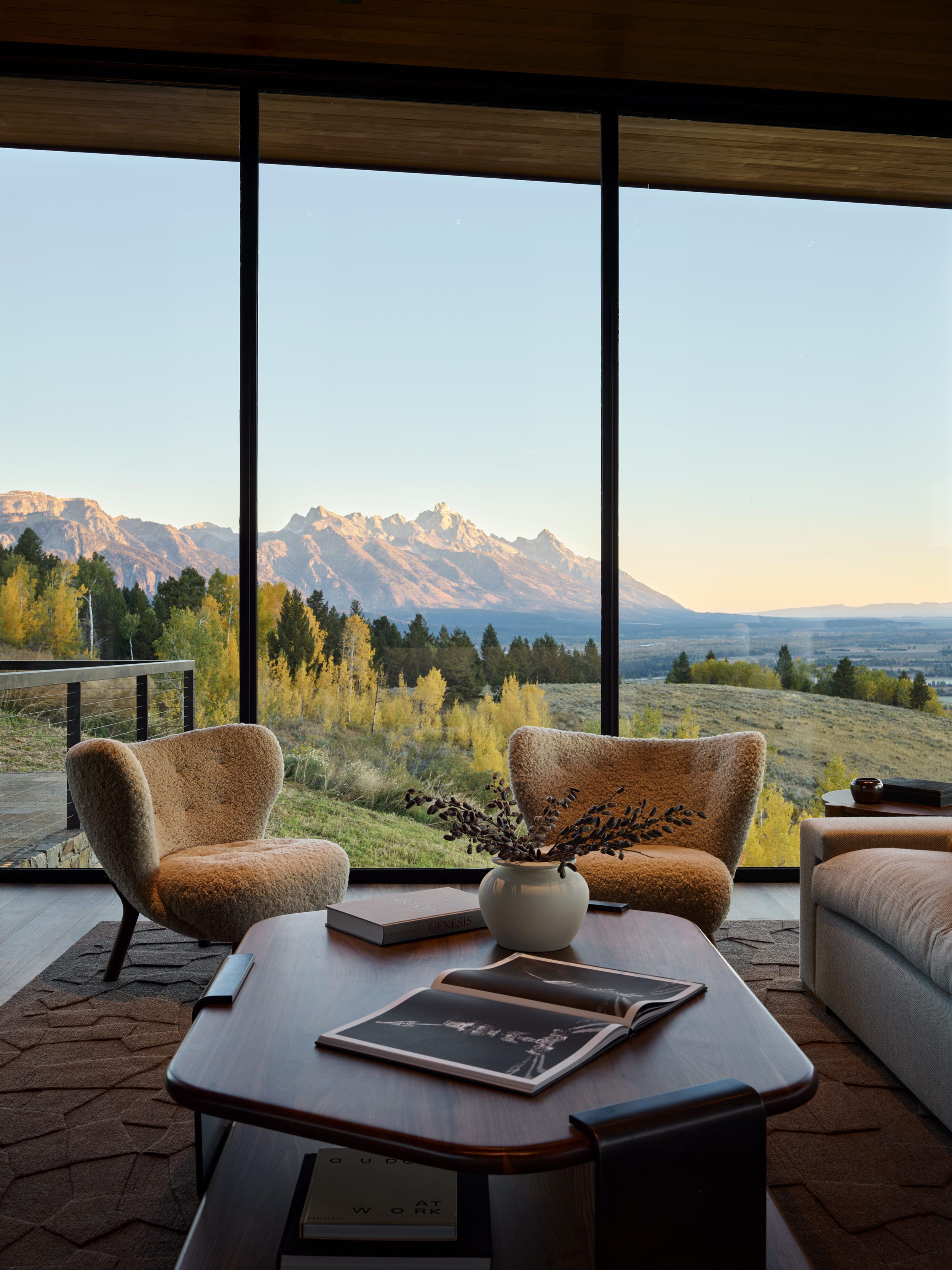 Set along a windswept ridgeline in Jackson, Wyoming, this mountain retreat is both a family sanctuary and a living gallery, integrating architecture, art, and landscape. The home is inspired by a striking Jedd Novatt sculpture, a longtime anchor of the owners’ personal collection. The sculpture not only greets visitors at the entry, but also informs the home’s architectural vocabulary—a study in layered geometry.
