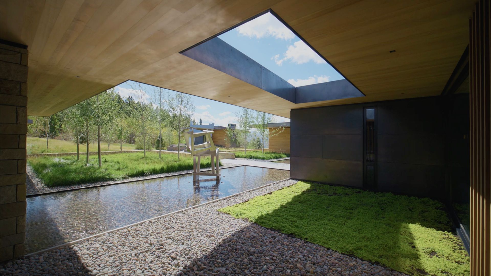 For the owners, longtime residents of Jackson, Wyoming, creating a home that reflected their shared love for art and the natural environment was a driving force for Elysium Fields. Envisioned as a multi-generational retreat, this home serves as both a family sanctuary and a living gallery. To create a home that respects the scale of its surroundings while also addressing the needs of a large, active family, the design unfolds as a series of interlocking volumes, their placement both pragmatic and evocative.