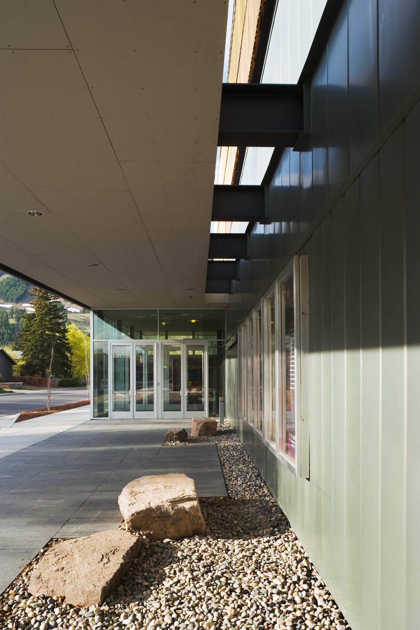 The Center for the Arts project was undertaken in cooperation with the Town of Jackson and Teton County to create a campus that brought together twenty local arts and education organizations. The 39,000-square-foot Performing Arts Wing complements the 40,000-square-foot Arts and Education Wing and includes a 525-seat proscenium theater, lobby, rehearsal facilities, scene shop, and other administrative and support spaces. The theater is designed to function flexibly, so that the different disciplines represented under the Center banner are able to use the facility to showcase their productions. In addition to accommodating a wide variety of performance types, the theater can also modify its seating capacity to ensure an intimate experience for every audience.