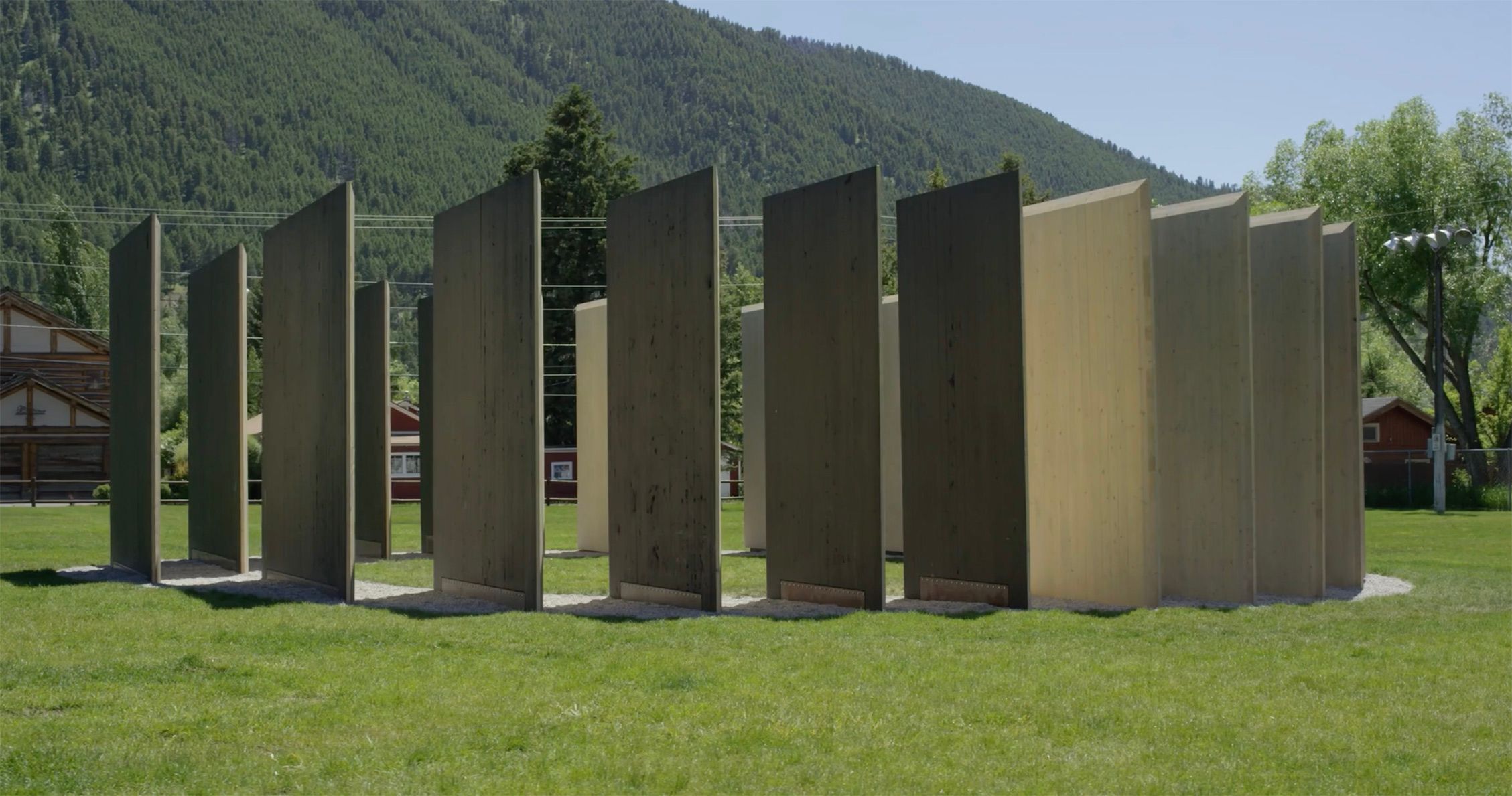 Town Enclosure is a circular array of cross-laminated timber wall panels erected vertically and spaced to invite exploration. From a distance, the composition speaks to the surrounding mountains, engages passing drivers and pedestrians and adds sculptural interest to the flat park lawn. Its form is derived from symbols of placemaking in the Mountain West, such as fences and corrals, as well as iconic landmarks like the West Buttress of the Grand Teton. Its simultaneous transparency and opaqueness create layers of interpretation, lending depth and complexity to an otherwise simple form. True engagement happens as one moves around and within the panels. Intended as a performance and exhibition space for community artist and groups, it acts as an armature for creative discovery.